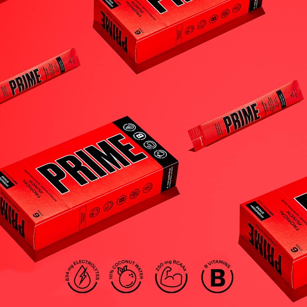 PRIME HYDRATION+ Sticks TROPICAL PUNCH | Hydration Powder Single Serve Sticks | Electrolyte Powder On The Go | Low Sugar | Caffeine-Free | Vegan | 6 Sticks