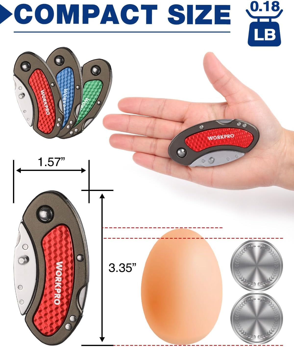 WORKPRO Folding Utility Knife Set Quick Change Blade, Back-lock Mechanism 3-piece with 10-piece Extra Blades